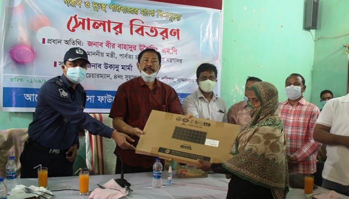 প্রধান অতিথির বক্তব্য শেষে মন্ত্রী বীর বাহাদুর উশৈসিং, এমপি সুয়ালক ইউনিয়নের গরিব ও অসহায় ৪৩ পরিবারের মাঝে সোলার হোম সিস্টেম তুলে দেন।