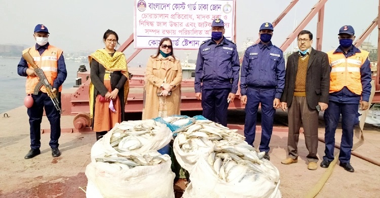 কোস্টগার্ডের বিশেষ অভিযানে বিপুল পরিমাণ জাটকা জব্দ