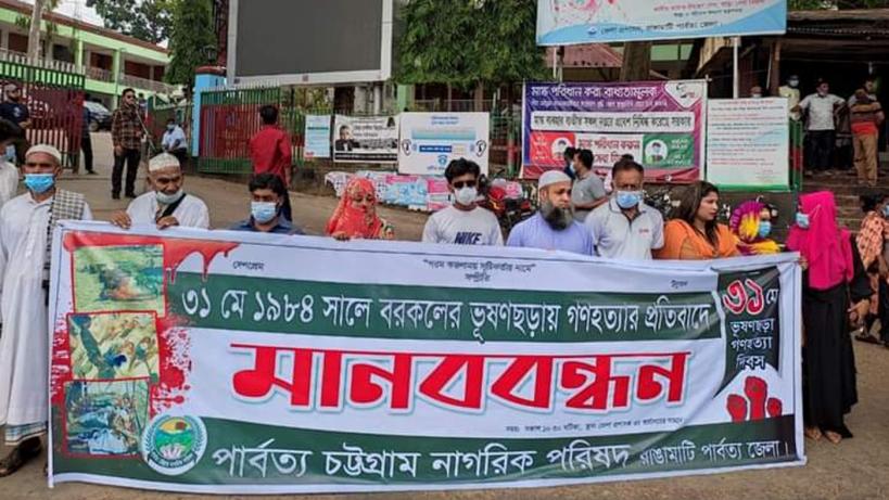 ভূষণছড়া গণহত্যায় হত্যাকারিদের বিচারের দাবিতে রাঙামাটিতে মানববন্ধন