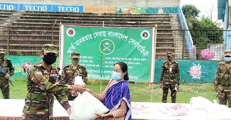 রাঙ্গামাটিতে সুবিধাবঞ্চিত মানুষের মাঝে সেনাবাহিনীর সহায়তা
