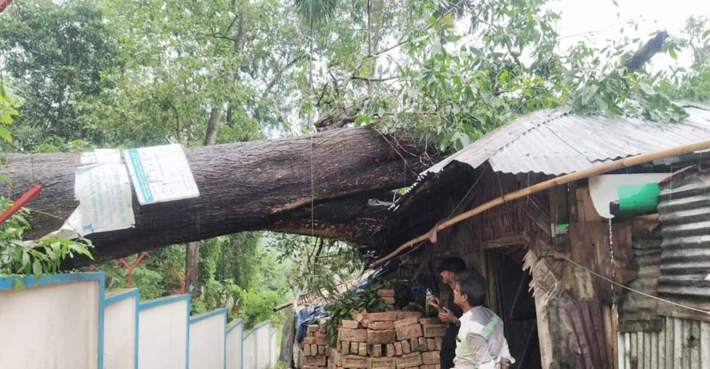 ক্ষতিগ্রস্ত চা দোকানদার মো. সুজন বলেন, সকাল ৮টার দিকে মাত্র দোকান খুলেছিলাম। তখনই কিছু বুঝে উঠার আগেই গাছটি মড়মড় শব্দ করে আমার দোকান ঘরের ওপর আছড়ে পড়ে। এ সময় অন্যদের চেষ্টায় দোকানে থাকা কর্মচারী বের হলেও দোকানে থাকা দুইটা ফ্রিজসহ সম্পূর্ণ দোকান মুহূর্তের মধ্যে ভেঙে চুরমার হয়ে যায়।