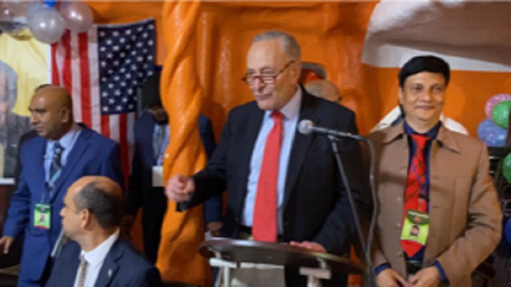 নিউইয়র্কের জ্যামাইকায় বাংলাদেশি আমেরিকান সোসাইটির মতবিনিময় সভায় প্রধান অতিথি ছিলেন যুক্তরাষ্ট্র সিনেটের মেজরিটি লিডার ও নিউইয়র্ক থেকে নির্বাচিত সিনেটর চাক শুমার।