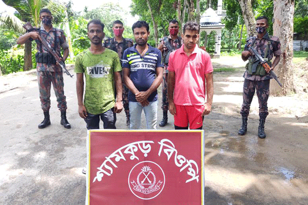 আটককৃতরা হল- নড়াইল জেলার কালিয়া থানার দুশোহাটি গ্রামের মদন মোহন সরকারের ছেলে শ্রী প্রভাষ সরকার (২৮), খুলনা জেলার ডুমুরিয়া থানার রুপনগর গ্রামের অগর বৈরাগীর ছেলে শ্রী অচ্যুৎ কুমার বৈরাগী (৩৪) ও গোপালগঞ্জ এলাকার টুঙ্গীপাড়া থানার শালুকা গ্রামের অধির বালার ছেলে শ্রী আশিক বালা (২৭)।