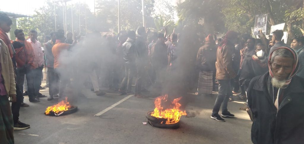 যুবলীগ নেতা উদ্ধারের দাবিতে খাগড়াছড়ির মানিকছড়িতে সড়ক অবরোধ