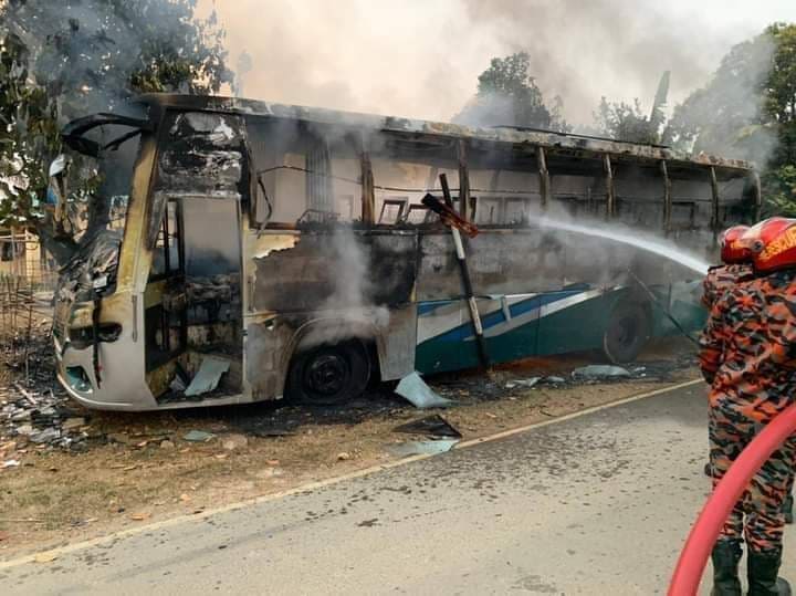 খাগড়াছড়ির দীঘিনালায় যাত্রীবাহী বাসে দুর্বৃত্তের আগুন