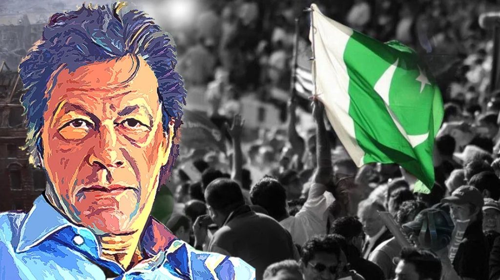 অথচ আমি কখনো কোনো প্রতিষ্ঠান বা আদালতের বিরুদ্ধে মানুষকে উস্কে দেইনি।’ পার্লামেন্টে তার হেরে যাওয়ার পর সমর্থকদের প্রতিক্রিয়ার দিকে ইঙ্গিত করে তিনি বলেন, পাকিস্তানের জনগণ এভাবে আর কখনো রাস্তায় নামেনি। তিনি বলেন, মনে রাখতে হবে যে ‘এটা সত্তরের দশকের পাকিস্তান নয়। এটা নতুন পাকিস্তান। এখন সচেতন মানুষের পাকিস্তান, এটা সোশ্যাল মিডিয়ার পাকিস্তান।’