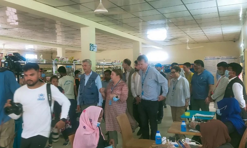 পরিদর্শনকালে শরণার্থী ত্রাণ ও প্রত্যাবাসন কমিশনার শাহ রেজওয়ান হায়াতসহ ঊর্ধ্বতন কর্মকর্তারা উপস্থিত ছিলেন। দুপুরের পর প্রতিনিধিদল কক্সবাজারের উদ্দেশে রওনা দেয়।