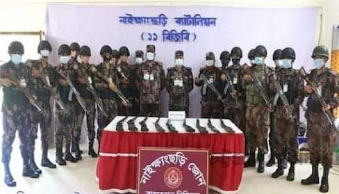 সূত্র জানায়, গত সোমবার (৬ জুন) রাত সাড়ে ১০ টায় নাইক্ষ্যংছড়ি বিজিবি কর্তৃক বাইশারী ইউনিয়নের নারিচবুনিয়া এলাকায় অভিযান চালিয়ে এসব অস্ত্র উদ্ধার করে।