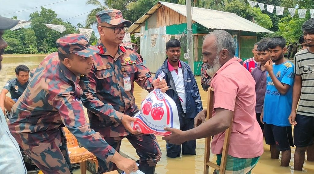 রাঙামাটিতে খাদ্য ও ঔষধ নিয়ে বন্যাদুর্গতদের পাশে বিজিবি