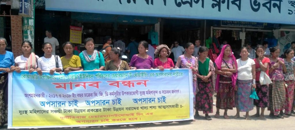 ইউপি চেয়ারম্যানের অপসারণের দাবিতে বান্দরবানে মানববন্ধন