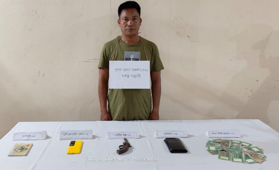 টহলদলটি গোয়েন্দা তথ্যের ভিত্তিতে চাঁদা আদায়কারী সন্দেহে ঘটনাস্থল হতে ১টি দেশীয় পিস্তলসহ জেএসএস (সন্তু) দলের সন্ত্রাসী পুলক কুমার তঞ্চঙ্গ্যা (৩২) নামে একজনকে আটক করে।
