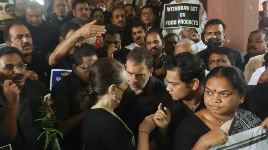 ভারতের রাজধানী দিল্লিতে কংগ্রেসের বিক্ষোভ থেকে দলটির নেতা রাহুল গান্ধী ও প্রিয়াঙ্কা গান্ধী ভদ্রকে আটক করা হয়েছে। কংগ্রেস প্রধান সোনিয়া গান্ধী, রাহুল গান্ধী ও কংগ্রেস এমপিদের নেতৃত্বে ভারতের পার্লামেন্টে কালো পোশাক পরে এই বিক্ষোভ কর্মসূচি পালন করা হচ্ছিল। দ্রব্যমূল্য বৃদ্ধি ও বেকারত্বের প্রতিবাদে এই কর্মসূচির ডাক দেয় কংগ্রেস। ভারতীয় সংবাদমাধ্যম এনডিটিভি এ খবর জানিয়েছে।