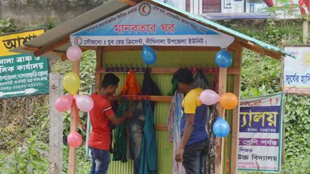 ‘আপনার অপ্রয়োজনীয় জিনিস এখানে রেখে যান, প্রয়োজনীয় জিনিস সংগ্রহ করুন’—স্লোগানে খাগড়াছড়ির দীঘিনালায় যুব রেড ক্রিসেন্টের উদ্যোগে চালু করা হয়েছে মানবতার ঘর। বিশ্ব রেড ক্রস ও রেড ক্রিসেন্ট দিবস উপলক্ষে বুধবার সকালে উপজেলার দীঘিনালা সরকারি ডিগ্রি কলেজের নিচে সড়কের পাশে মানবতার ঘর যৌথভাবে উদ্বোধন করেন উপজেলা পরিষদ চেয়ারম্যান নব কমল চাকমা ও উপজেলা নির্বাহী কর্মকর্তা (ইউএনও) মোহাম্মদ উল্লাহ।