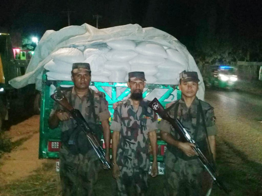 বিজিবি ৩৪ বিজিবির অধিনায়ক লে: কর্ণেল আলী হায়দার আজাদ আহেমদ জানিয়েছেন বৃহস্পতিবার বিকাল ৫টার দিকে উখিয়া কুতুপালং রোহিঙ্গা ক্যাম্প থেকে চট্টগ্রামগামী মালবাহি ট্রাক ঢাকা মেট্রো-ড-১১-৭৫৪৩ ট্রাক আটক করে । ট্রাকটির বিজিবির সদস্যরা তল্লাশি চালানোর সময় গাড়িতে থাকা ড্রাইভার পালিয়ে যায়। পরে বিজিবি সদস্যরা ট্রাক সদস্যরা ৩ লক্ষ টাকা মূল্যের ৬ হাজার কেজি ‘এ্যাংকর ডাল’ জব্ধ করে। এসব ডাল বিশ্ব খাদ্য সংস্থ্যা কর্তৃক রোহিঙ্গাদের জন্য ত্রাণ সামগ্রী হিসেবে দেয়া হয়েছিল। অপর দিকে সন্ধ্যা ৭টার দিকে একই চেক পোস্টে উখিয়া কুতুপালং থেকে কক্সবাজারগামী একটি মালবাহি পিক-আপ চট্ট মেট্রো অ ১১-০২৪২ আটক করে। এসময় কৌশলে ড্রাইভার পালিয়ে যায়। পরবর্তীতে উক্ত পিক-আপ তল্লাশি চালিয়ে ২ লক্ষ টাকার মূল্যে ৫ হাজার কেজি ত্রাণের চাউল জব্ধ করে। এসব চাল রোহিঙ্গাদের জন্য কাজাকাস্থান সরকারের পক্ষ থেকে ত্রাণ সামগ্রী হিসেবে অনুদান দেয়া হয়েছিল।