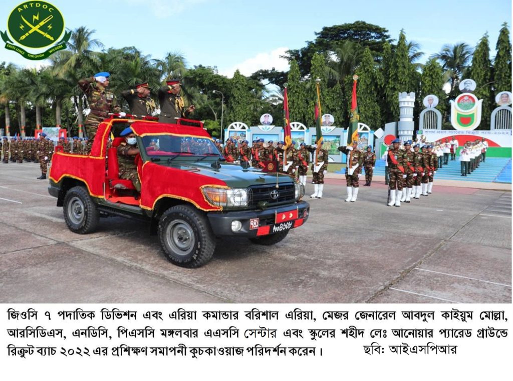 বাংলাদেশ সেনাবাহিনীর আর্মি সার্ভিস কোর (এএসসি) এর রিক্রুট ব্যাচ-২০২২ এর শপথ গ্রহণ ও সমাপনী কুচকাওয়াজ অনুষ্ঠান আজ মঙ্গলবার (১১ অক্টোবর) আর্মি সার্ভিস কোর সেন্টার এন্ড স্কুল, জাহানাবাদ সেনানিবাস খুলনায় অনুষ্ঠিত হয়।