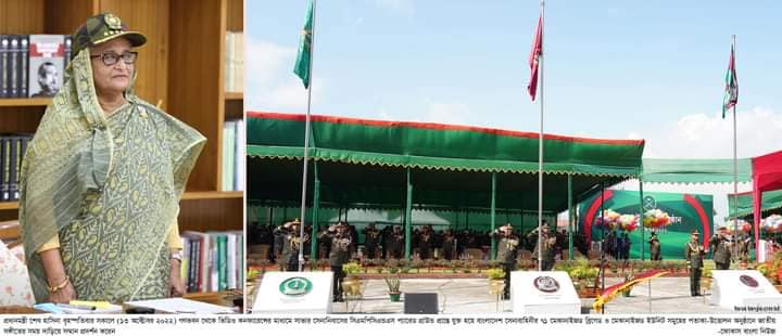 আজ বৃহস্পতিবার (১৩ অক্টোবর) সকালে সাভার সেনানিবাসে সিএমপি সেন্টার অ্যান্ড স্কুলে সদর দফতর ৭১ মেকানাইজড ব্রিগেড, ১৫ ও ৪০ ইস্ট বেঙ্গল (মেকানাইজড) এবং ৯ ও ১১ বীর (মেকানাইজড)-এর পতাকা প্রদান অনুষ্ঠানে প্রধান অতিথির ভাষণে এ কথা বলেন প্রধানমন্ত্রী। তিনি গণভবন থেকে ভিডিও কনফারেন্সের মাধ্যমে ভার্চুয়ালি অনুষ্ঠানে যুক্ত হন।