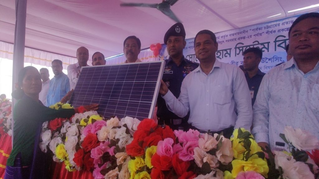 পার্বত্য চট্টগ্রাম বিষয়ক মন্ত্রণালয়ের মন্ত্রী বীর বাহাদুর উশৈসিং বলেছেন, ‘বিদ্যুতে আলোকিত হবে দুর্গম পাহাড়ি এলাকার ১৪ হাজার বাড়ি। এজন্য পাহাড়ের হতদরিদ্র পরিবারের মাঝে সোলার প্যানেল বিতরণ করছে সরকার।’