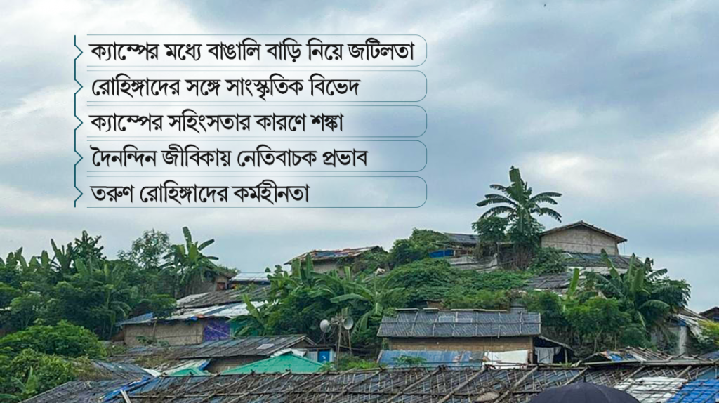 কক্সবাজারের উখিয়া ও টেকনাফ অঞ্চলে সবশেষ ২০১৭ সালে প্রায় সাড়ে ৭ লাখ রোহিঙ্গা প্রবেশের পর তাদের জায়গা করে দিয়েছিল স্থানীয় মানুষ। গত পাঁচ বছরের অভিজ্ঞতায় সেই সৌহার্দ্য কমে এখন পারস্পারিক ‘বিদ্বেষে’ পরিণত হচ্ছে। এই রোহিঙ্গা আবাসন দীর্ঘস্থায়ী হলে আগামীতে বড় ধরনের নেতিবাচক প্রভাবের শঙ্কা করছে ‘হোস্ট কমিউনিটি’র নেতারা। অন্যদিকে রোহিঙ্গারা সরাসরি কোনও অসন্তোষ প্রকাশ না করলেও তাদের তরুণ প্রজন্মের (১৫ থেকে ৩০ বছর বয়সী) দাবি, হোস্ট কমিউনিটি তাদের মাধ্যমে লাভবান হয়েছে। তারা মনে করে, ‘হোস্ট কমিউনিটি আরও বেশি সহানুভূতিশীল হতে পারতো।’