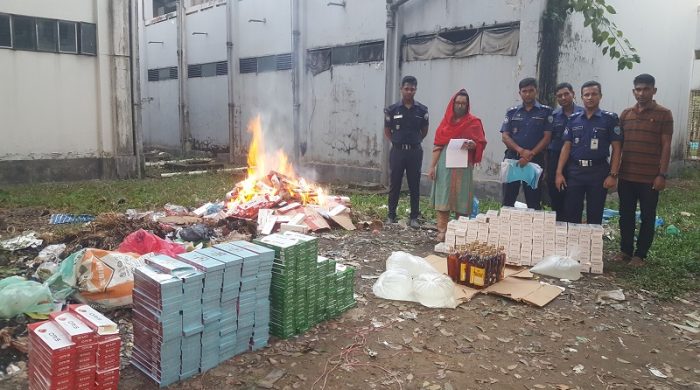 মঙ্গলবার (১ নভেম্বর) বিকালে বান্দরবান আদালত চত্ত্বরে চিফ জুডিসিয়াল ম্যাজিস্ট্রেট মোহাম্মদ মাহাবুবুর রহমান এর নির্দেশনায় জুডিসিয়াল ম্যাজিস্ট্রেট সৈয়দা সুরাইয়া আক্তার উপস্থিতিতে এসব দেশীয় চোলাই মদ ও সিগারেট আগুনে পুড়িয়ে ধ্বংস করা হয়।