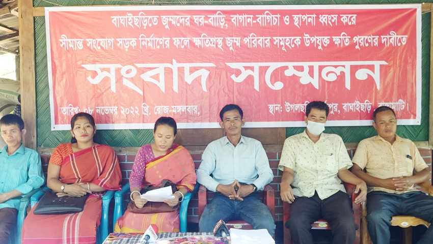 ‘সীমান্ত সড়কের কারণে ক্ষতিগ্রস্ত’ দাবি করে বাঘাইছড়ির ১৮৮ পরিবারের সংবাদ সম্মেলন