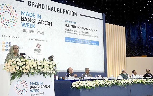 আজ রোববার সকালে বাংলাদেশ পোশাক প্রস্তুত ও রপ্তানিকারক সমিতি (বিজিএমইএ) আয়োজিত ‘মেইড ইন বাংলাদেশ উইক-২০২২’-এর উদ্বোধন অনুষ্ঠানে প্রধান অতিথির ভাষণে প্রধানমন্ত্রী এই আহ্বান জানান।