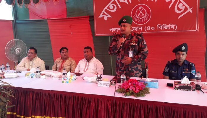 শনিবার (১২ নভেম্বর) বেলা ১১টার দিকে ৪০, বিজিবির পলাশপুর ব্যাটালিয়ন সদর দফতরে অনুষ্ঠিত মতবিনিময় সভায় সভাপতিত্ব করেন, উক্ত ব্যাটালিয়নের অধিনায়াক লে. কর্ণেল মো. সোহেল আহমেদ।