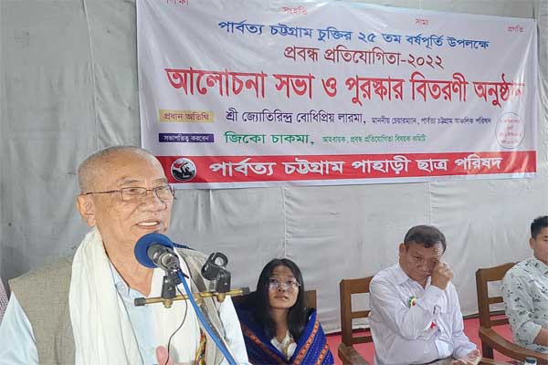 শুক্রবার (২৩ ডিসেম্বর) সকালে পার্বত্য চট্টগ্রাম চুক্তির ২৫ বছর বর্ষপূর্তি উপলক্ষে জনসংহতি সমিতির সহযোগ ছাত্র সংগঠন পাহাড়ী ছাত্র পরিষদ আয়োজিত প্রবন্ধ প্রতিযোগিতার আলোচনা সভা ও পুরস্কার বিতরন অনুষ্ঠানে প্রধান অতিথির বক্তব্যে এসব কথা বলেন তিনি।
