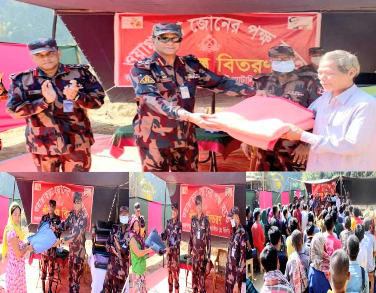 মহান বিজয় দিবস-২০২২ উদযাপন উপলক্ষ্যে রাঙামাটি বিজিবির সেক্টর কমান্ডার ও সেক্টর সদর দপ্তর কর্তৃক সীমান্তবর্তী দুর্গম পাহাড়ী এলাকায় সম্প্রীতি ও উন্নয়ন প্রকল্পের আওতায় গরীব ও দুঃস্থ প্রায় ১শত পরিবারের মাঝে শীতবস্ত্র (কম্বল) বিতরণ করা হয়েছে।