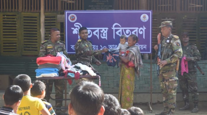 ১০ আরই ব্যাটালিয়ন ভারপ্রাপ্ত অধিনায়কের দিকনির্দেশনা মোতাবেক শীতবস্ত্র বিতরণ করেন ক্যাপ্টেন রিয়াদ মাহামুদ উৎস।