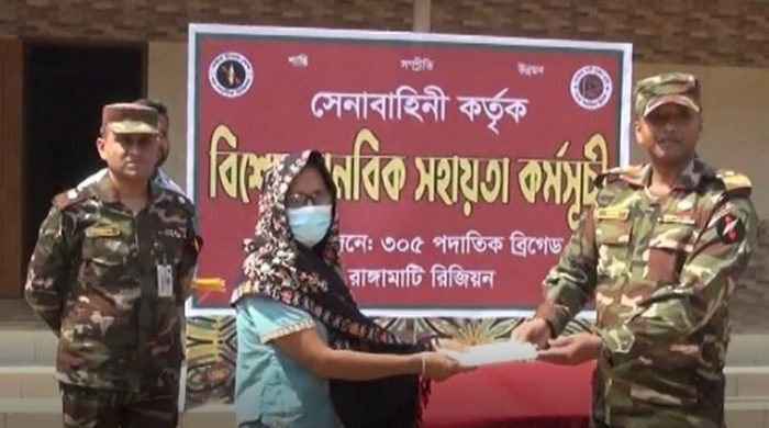 রাঙামাটিতে সেনাবাহিনীর মানবিক সহায়তা বিতরণ