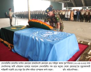 বৈদেশিক মিশনে মৃত্যুবরণকারী শান্তিরক্ষীর নামাজে জানাযা অনুষ্ঠিত