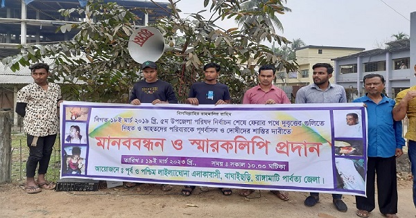 বাঘাইছড়িতে নির্বাচনী সহিংসতার ৪ বছর: জড়িতদের বিচার ও নিহতদের পরিবারকে পুর্নবাসনের দাবি