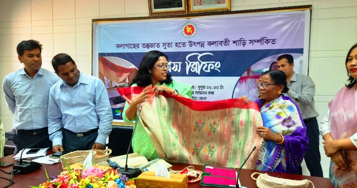 বান্দরবানে কলা গাছের তন্তু থেকে উৎপাদিত প্রথম কলাবতী শাড়ি প্রধানমন্ত্রী শেখ হাসিনাকে উপহার দেওয়া হবে জানিয়েছেন জেলা প্রশাসক ইয়াছমিন পারভীন তিবরীজি।