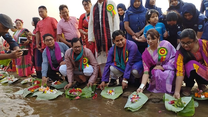 বুধবার (১২ এপ্রিল) সকাল থেকে নদীর পাড়গুলো হাজারো তরুণ-তরুণীর মিলন মেলায় পরিণত হয় ফুল বিঝুকে কেন্দ্র করে।