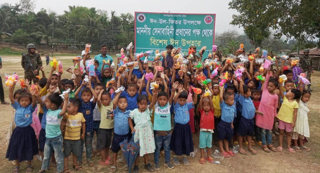 ঈদ উপলক্ষে বিলাইছড়ি সেনা জোন কর্তৃক শিশুদের খেনালা সামগ্রী প্রদান করা হয়েছে।