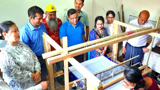 বান্দরবানে কলাগাছের সুতায় তৈরি হস্তশিল্প পরিদর্শনে মন্ত্রণালয়ের টিম