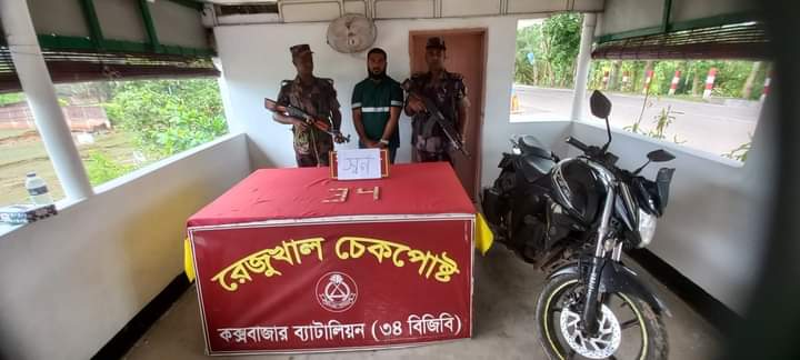 বিজ্ঞপ্তিতে বলা হয়, স্বর্ণ চোরাচালানের গোপন সংবাদের ভিত্তিতে রেজুখাল চেকপোষ্ট অভিযান পরিচালনা করা হয়। এসময় কোটবাজার থেকে কক্সবাজারগামী সন্দেহভাজন ১টি মোটরসাইকেল থামিয়ে তল্লাশী করে গাড়ির সীটের নিচে কৌশলে লুকায়িত অবস্থায় আনুমানিক ২.৬৫৬ কেজি ওজনের মোট ১৬ টি স্বর্ণের বার উদ্ধার করা হয়। এসময় পাচারকারী কৌশলে পালানোর চেষ্টা করলে তাকে আটক করা হয়।