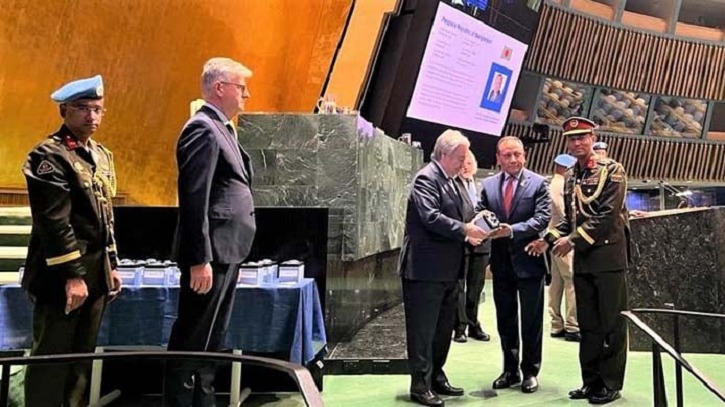 বৃহস্পতিবার (২৫ মে) জাতিসংঘ সদরদফতরে এ উপলক্ষে আয়োজিত এক অনুষ্ঠানে জাতিসংঘ মহাসচিব আন্তোনিও গুতেরেজের কাছ থেকে বাংলাদেশের পক্ষে এ মেডেল গ্রহণ করেন জাতিসংঘে নিযুক্ত বাংলাদেশের স্থায়ী প্রতিনিধি রাষ্ট্রদূত মোহাম্মদ আব্দুল মুহিত।