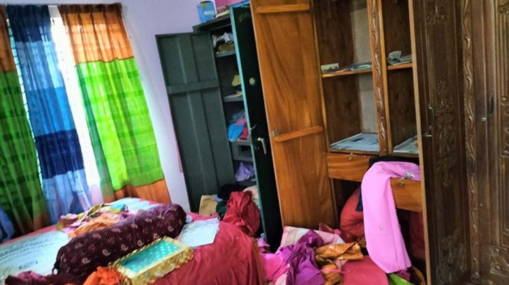 স্থানীয়রা জানান, সাবেক ওই সেনাসদস্য তার স্ত্রী ও বৃদ্ধ মাকে নিয়ে বাড়িতে বসবাস করেন। দুই ছেলের একজন লন্ডন প্রবাসী আরেকজন একজন ঢাকায় একটি মাদ্রাসায় পড়াশোনা করে। রবিবার গভীর রাতে বিল্ডিংয়ের বারান্দার গ্রিল কেটে ডাকাতদলের সদস্যরা ঘরে প্রবেশ করে। শব্দ শুনে ঘরের লোকের ঘুম ভাঙে। ডাকাতির কাজে বাধা দেওয়ায় ওই সেনাসদস্যকে এলোপাতাড়িভাবে কোপাতে থাকে। এ সময় তার স্ত্রী বাধা দিতে গেলে তাকেও কুপিয়ে আহত করা হয়। পরে ডাকাতদল আলমারিতে থাকা ১১ ভরি সোনা ও নগদ এক লাখ টাকা লুট করে নিয়ে যায়।