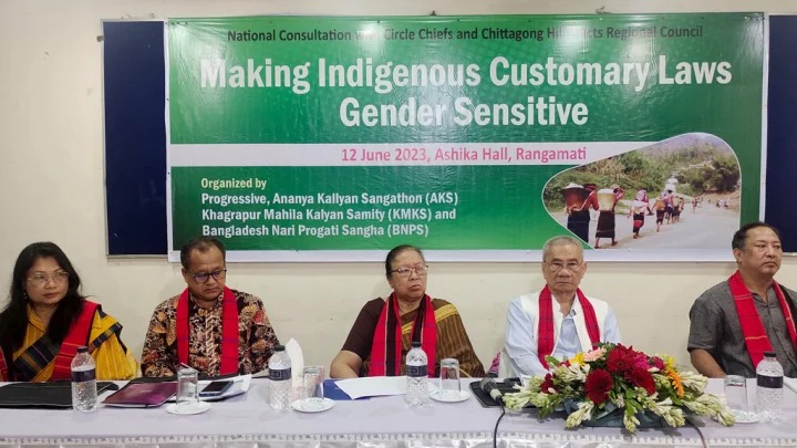 জাতীয় মানবাধিকার কমিশনের সাবেক সদস্য নিরূপা দেওয়ানের সভাপতিত্বে কর্মশালায় আরও বক্তব্য দেন খাগড়াপুর মহিলা কল্যাণ সমিতির নির্বাহী পরিচালক শেফালিকা ত্রিপুরা, অনন্যা কল্যাণ সংগঠনের নির্বাহী পরিচালক ডনাই প্রু নেলী, বাংলাদেশ নারী প্রগতি সংঘের পরিচালক শাহনাজ সুমী, প্রোগ্রেসিভের নির্বাহী পরিচালক সুচরিতা চাকমা, সিএইচট উইমেন্স অ্যাকটিভিস্ট এর সদস্য নুকু চাকমা ও হেডম্যান মংনু মারমা।
