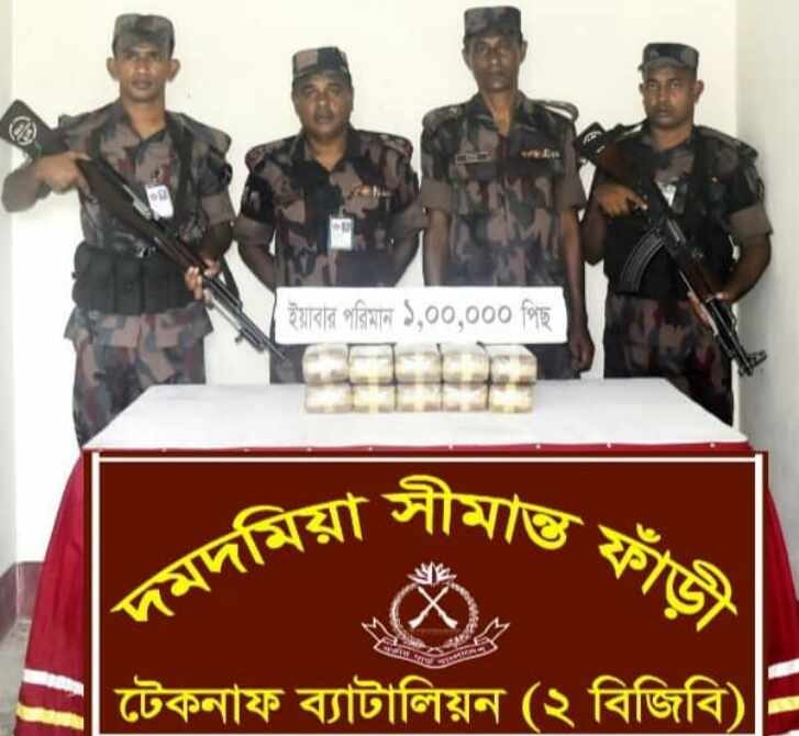 টেকনাফে বিজিবি কর্তৃক ১লাখ ইয়াবা উদ্ধার