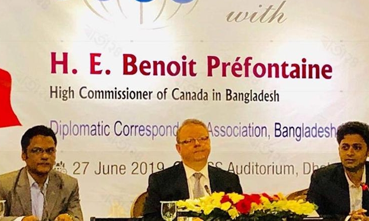 বাংলাদেশে নিযুক্ত কানাডার হাইকমিশনার বেনোই প্রেফনটেইন বৃহস্পতিবার (২৭ জুন) রাজধানীর বাংলাদেশ ইনস্টিটিউট অব ইন্টারন্যাশনাল অ্যান্ড স্ট্র্যাটেজিক স্টাডিজের (বিআইআইএসএস-বিস) মিলনায়তনে ডিক্যাব টকে এসব কথা বলেন।