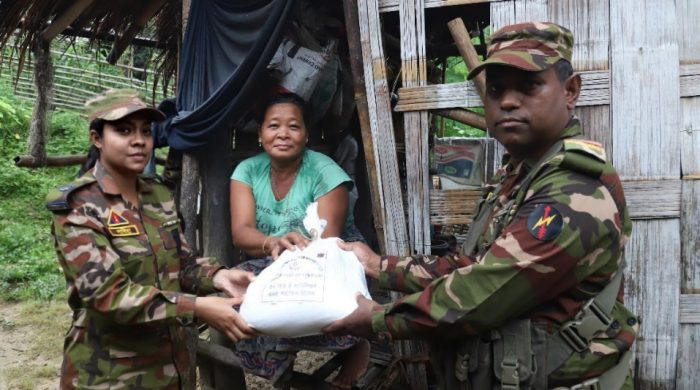 অতিবৃষ্টির ফলে বন্যা ও ভূমি ধ্বসে দুর্যোগকালীন সময়ে রাঙামাটির জাবতলী ইউনিয়নে ভারী বর্ষণে ক্ষতিগ্রস্ত পরিবারের মাঝে ত্রাণ সহায়তা বিতরণ করেছে সেনাবাহিনীর ১০ আরই ব্যাটালিয়ন।