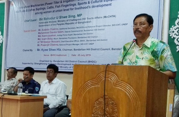 শুক্রবার (৫ জুলাই) দুপুরে বান্দরবান জেলা পরিষদ অডিটরিয়মে জেলার প্রতিটি ইউনিয়নের নারীদের আর্থ সামাজিক অবস্থার উন্নয়নে বিভিন্ন ফলজ চারা, গরু, কপি চারা, মৎস্য পোনা, বাদ্যযন্ত্র, ক্রীড়াসামগ্রী ও কৃষি যন্ত্রপাতি বিতরণ অনুষ্ঠানে প্রধান অতিথির বক্তব্যে তিনি এসব কথা বলেন ।