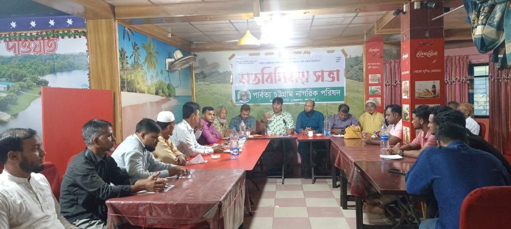 জেলা শাখার সভাপতি শাব্বির আহমেদ এর সভাপতিত্বে অনুষ্ঠিত মতবিনিময় সভায় প্রধান অতিথি হিসেবে উপস্থিত ছিলেন পার্বত্য চট্টগ্রাম নাগরিক পরিষদ কেন্দ্রীয় কমিটির চেয়ারম্যান কাজী মজিবর রহমান।