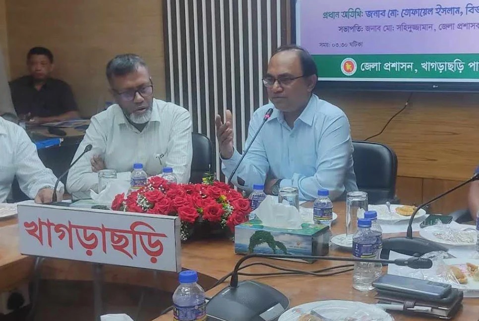 খাগড়াছড়িতে অনলাইনে স্থানীয় বাসিন্দা সনদ, উত্তরাধিকার সনদ ও বিদেশি নাগরিকদের ভ্রমণ অনুমতি প্রদান অনলাইন কার্যক্রমের উদ্বোধন করেন চট্টগ্রামের বিভাগীয় কমিশনার মো. তোফায়েল ইসলাম।