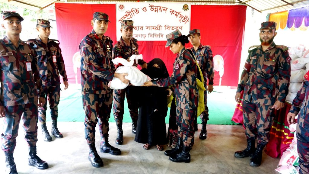 সম্প্রীতি ও উন্নয়ন কর্মসূচির আওতায় খাগড়াছড়ির রামগড়ে শতাধিক দুঃস্থ ও অসহায় মানুষের মাঝে খাদ্যসামগ্রী বিতরণ করেছে ৪৩ বর্ডার গার্ড ব্যাটালিয়ন (রামগড় জোন)।
