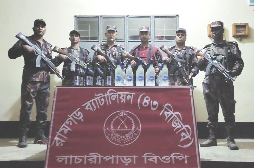 জানা যায়, গোপন সংবাদের ভিত্তিতে গতকাল রাতে ব্যাটালিয়ন (৪৩ বিজিবি) এর অধীনস্থ লাচারীপাড়া বিওপিতে কর্মরত নায়েব সুবেদার মোঃ কামাল হোসেন এর নেতৃত্বে একটি টহল দল কর্তৃক রামগড় থানার অন্তর্গত মর্টারটিলা নামক স্থানে অভিযান পরিচালনা করা হয়। এসময় বিজিবির উপস্থিতি টের পেয়ে পাচারকারীরা পালিয়ে গেলেও উক্ত স্থানে তল্লাশী চালিয়ে মালিকবিহীন ২৪ বোতল ভারতীয় মদ ও ২৩ বোতল ভারতীয় বিয়ার জব্দ করতে সক্ষম হয় বিজিবি সদস্যরা। যার বাজার মুল্য আনুমানিক একচল্লিশ হাজার সাতশত পঞ্চাশ টাকা।