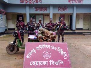 ৪৩ বিজিবির পৃথক অভিযানে মদ, গাজা ও গোল কাঠ জব্দ