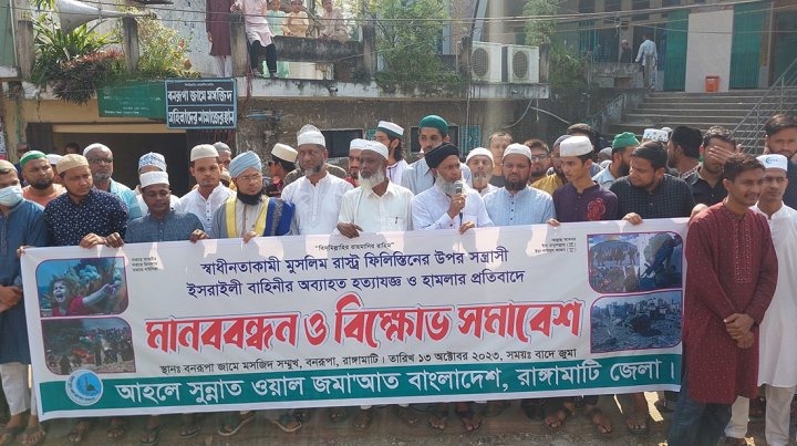 আহলে সুন্নাত ওয়াল জমাআত বাংলাদেশ রাঙামাটি জেলা শাখা সভাপতি সুফি আলম আল কাদেরী বলেন, ‘ইসরায়েলি ইহুদি গোষ্ঠীরা দীর্ঘদিন ফিলিস্তিন দখল করে নির্যাতন করে আসছে। প্রতিবাদ করায় উল্টো আবারও নির্যাতন ও হামলার শিকার হচ্ছে ফিলিস্তিনের সাধারণ জনগণ। পশ্চিমা ক্ষমতাধর রাষ্ট্রগুলো এই হামলাকে আরও উসকে দিচ্ছে।’